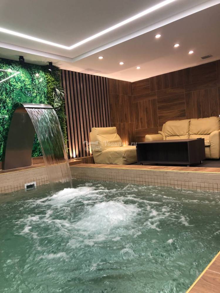 - большой бассейн с водопадом, гейзером, вода в котором фильтруется с помощью современного оборудования для максимальной безопасности каждого гостя сауны;